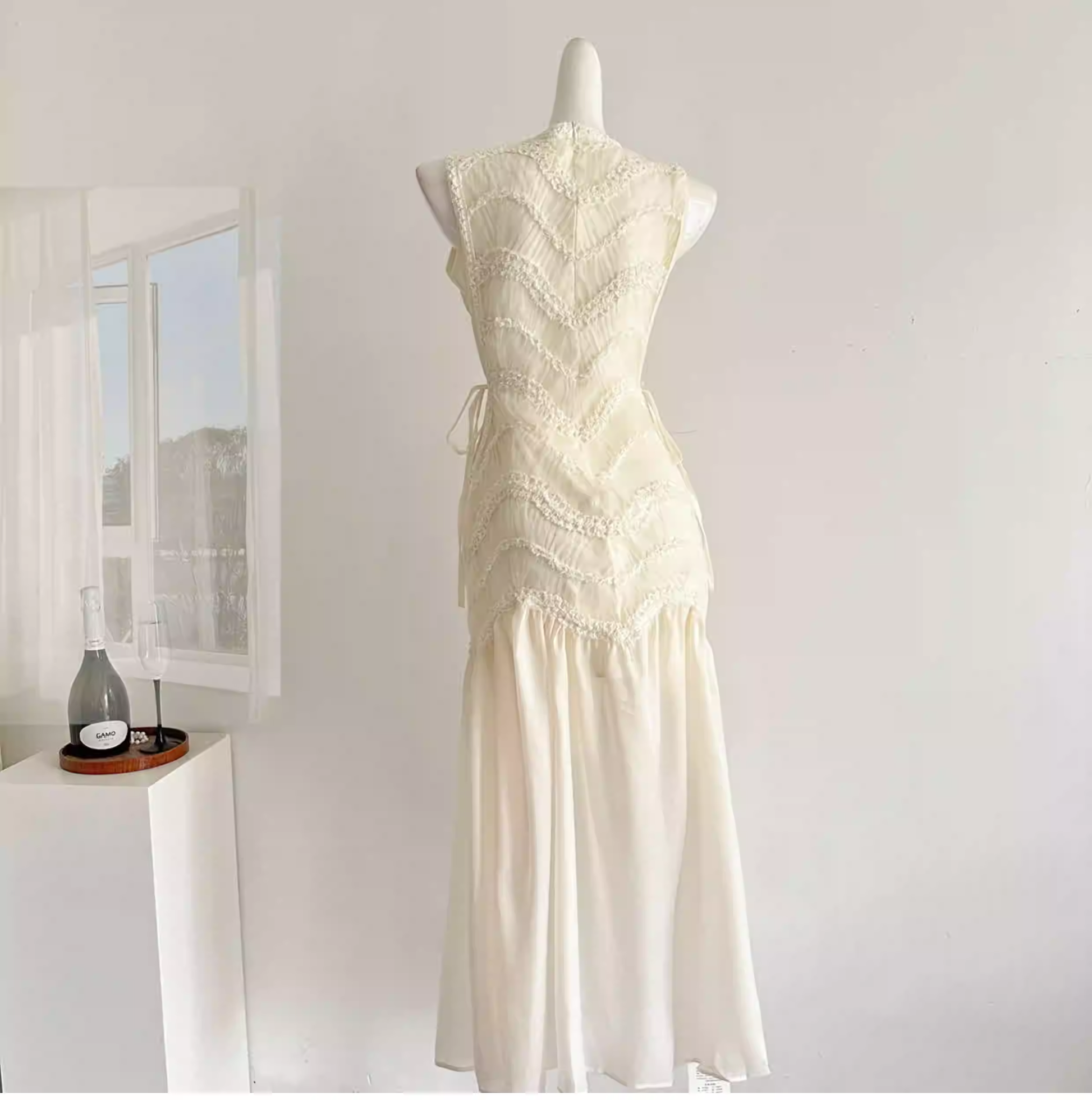 Classy Sleeveless Off White Chiffon Mermaid Long Party Dress Prom Gown SP1998