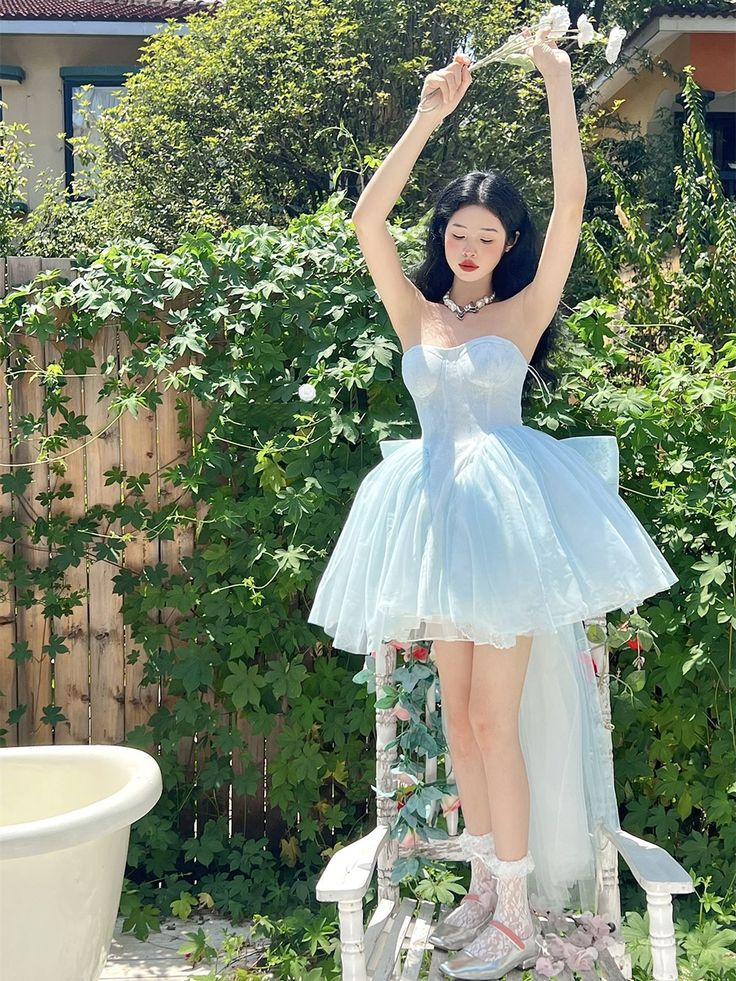 Classy Strapless Lace Tulle Cocktail Dress Blue A Line Homecoming Dress Y8838
