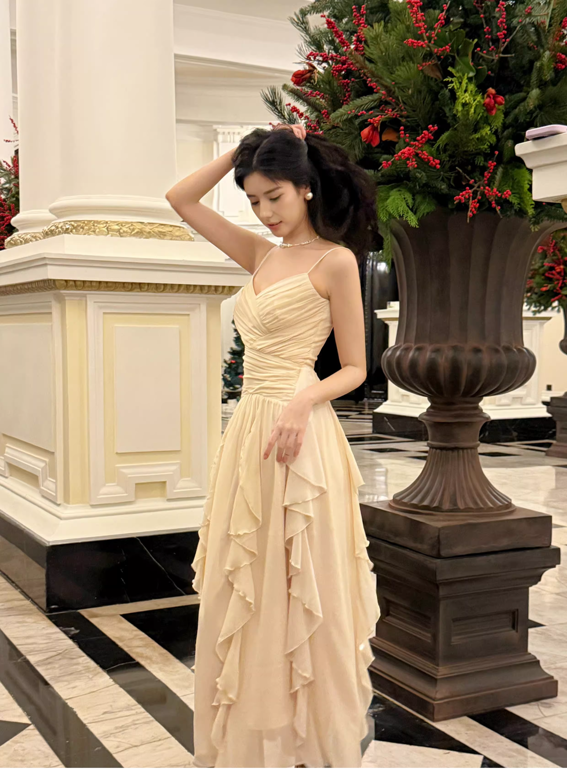Classy White Spaghetti Straps Chiffon Ruffles Long Wedding Guest Dress Party Dress SP2011