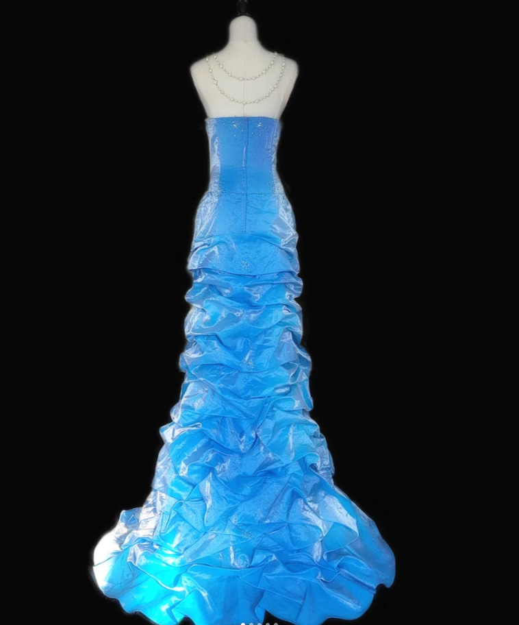 Elegant Blue Satin Pleated Strapless Mermaid Prom Dress Birthday Party Gown SP513