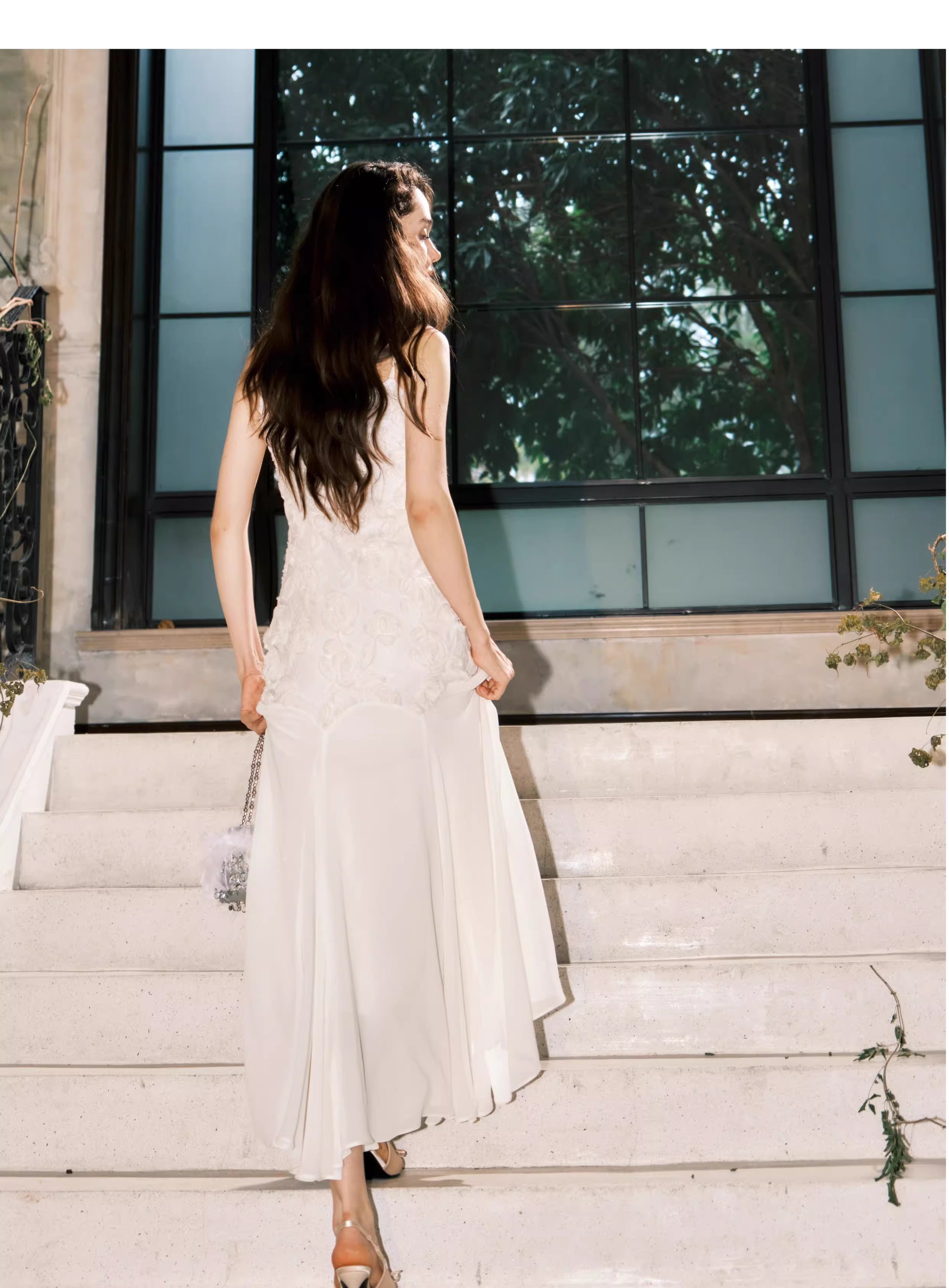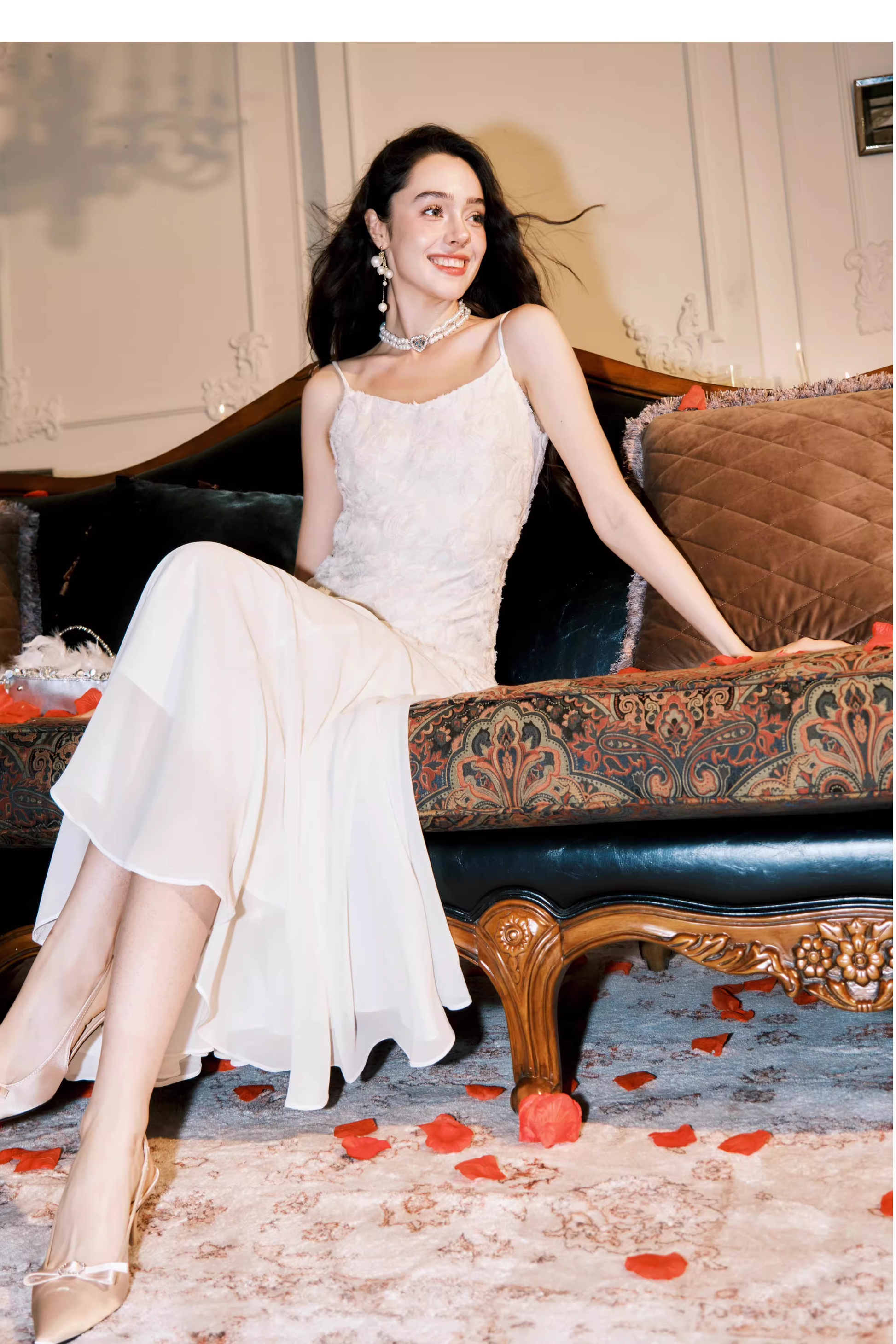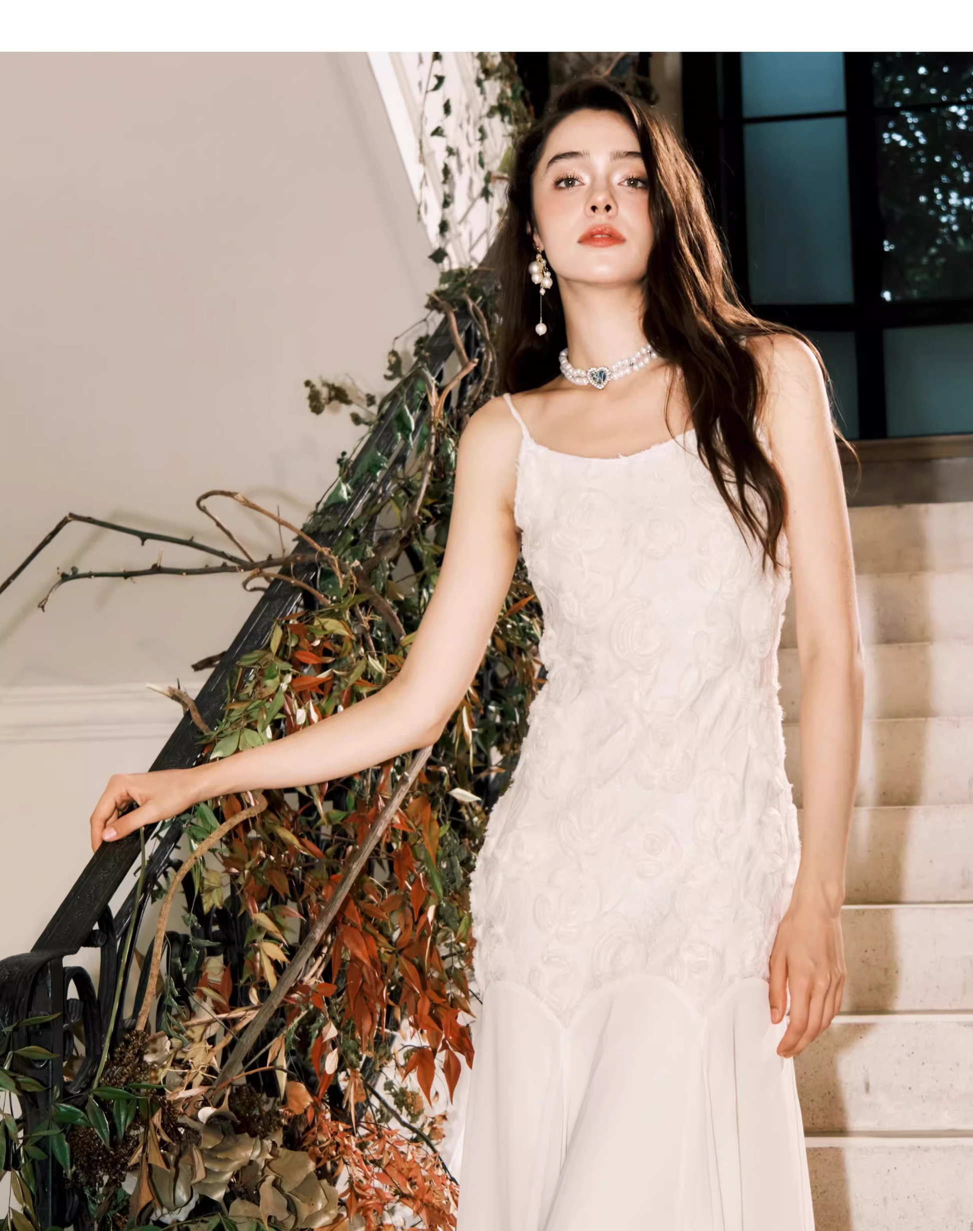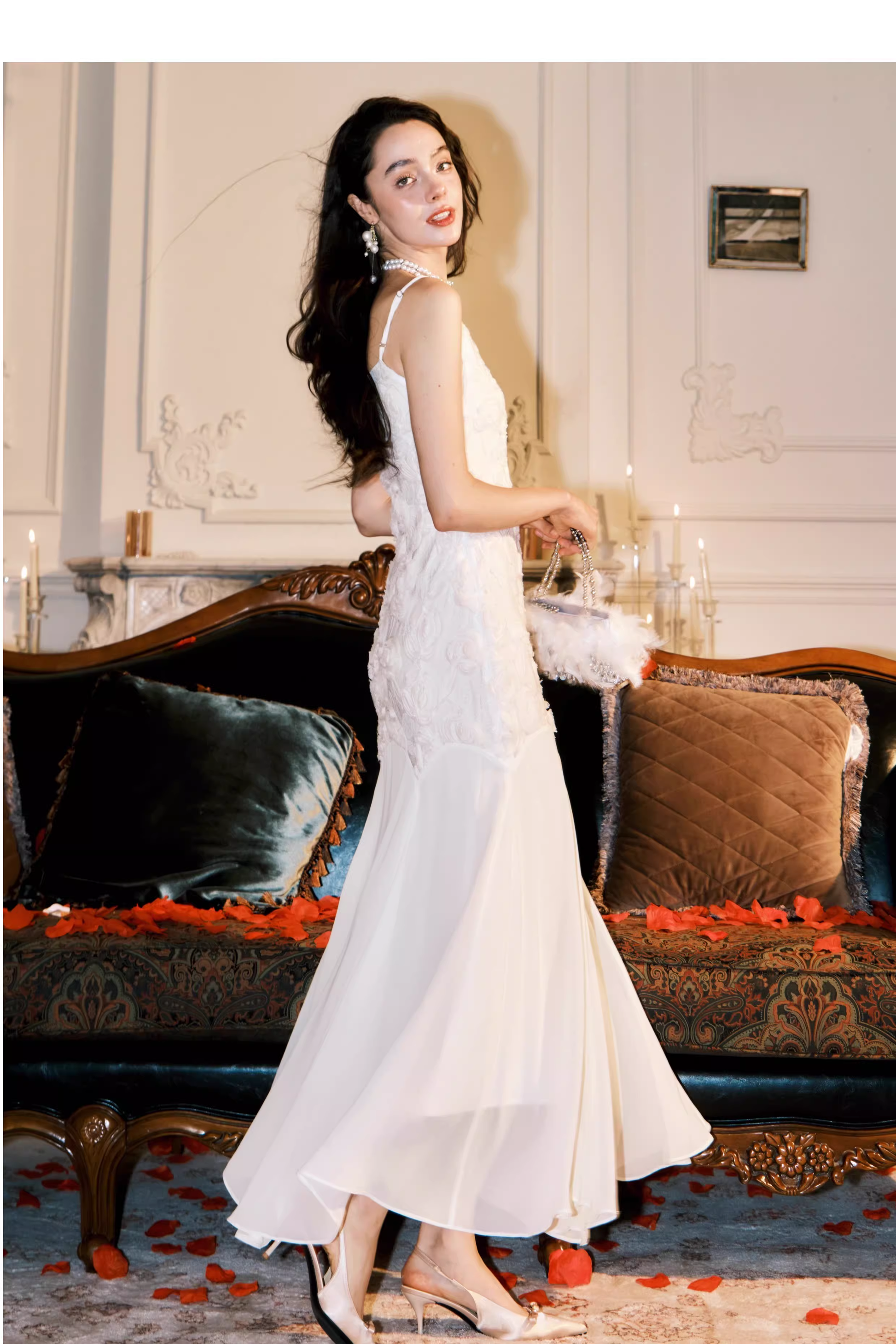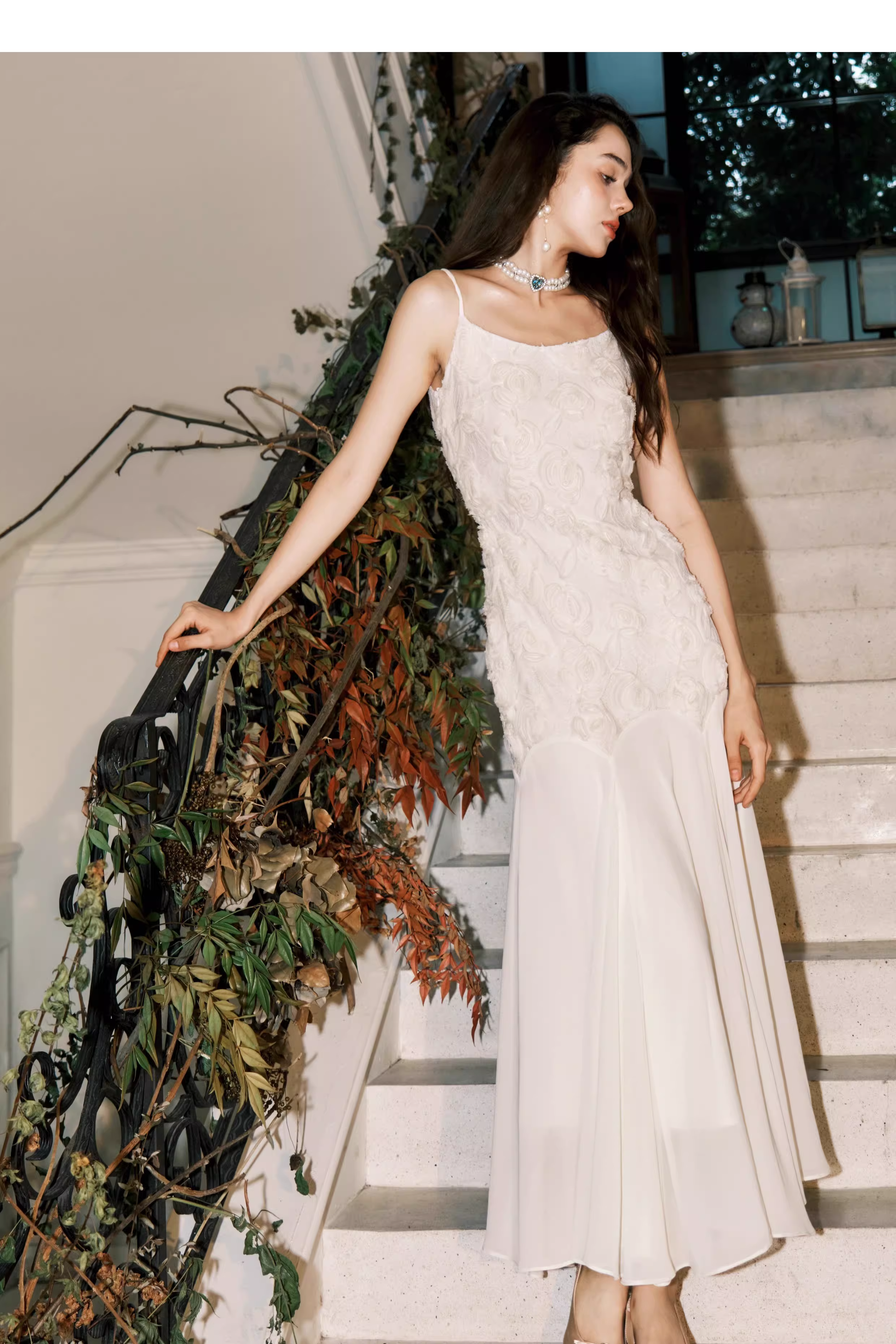 Fairy Spaghetti Straps 3D Rose Flowers Chiffon Mermaid Prom Dress White Birthday Party Dress SP1981